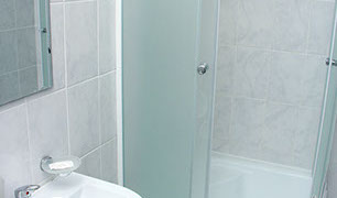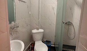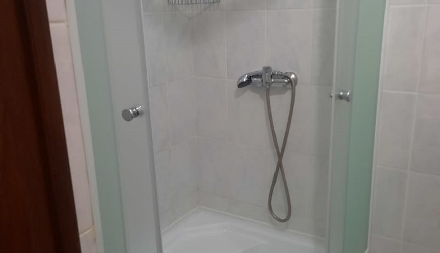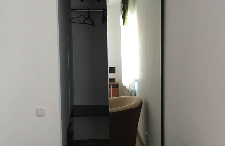 Односпальная кровать, прикроватные тумбы, плательный шкаф, душ. кабина, сан.узел, раковина