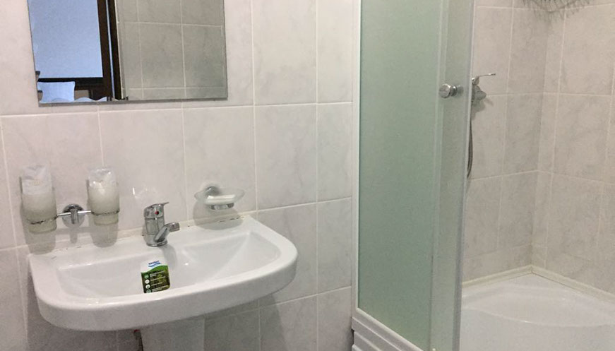 2 односпальные или двухспальная кровати, прикроватные тумбы, плательный шкаф, телевизор, душ. кабина, сан.узел, раковина